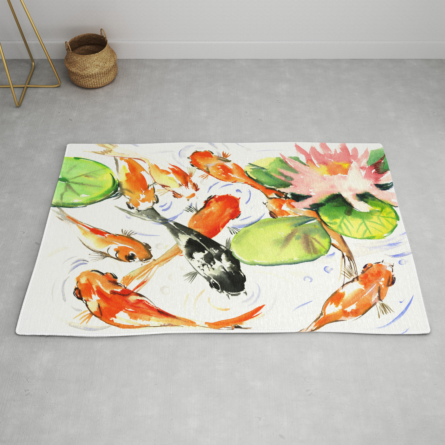 Koi Fish Pond Feng Shui 9 Koi Fish Art Rug By Surenart Society6